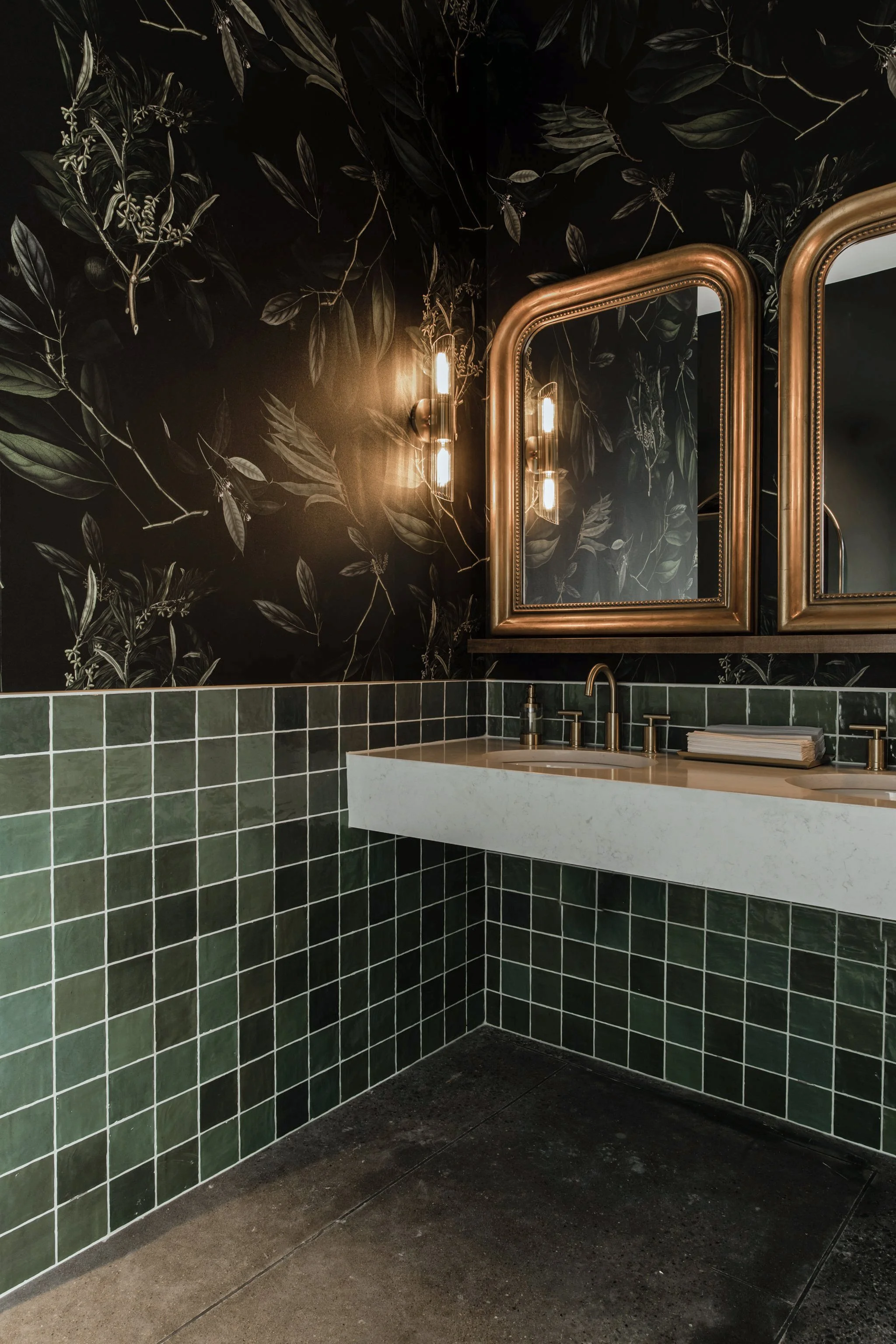 Artisan wallpaper and tile transport guests to the Mediterranean, while local products from Thistle Farms & Ranger Station bring a little bit of Nashville to this stylish experience.